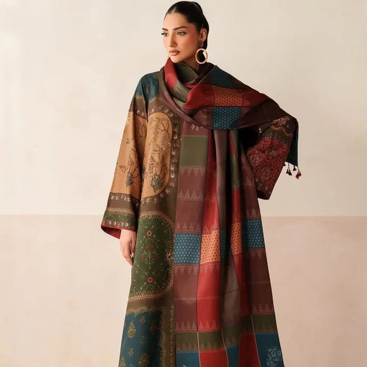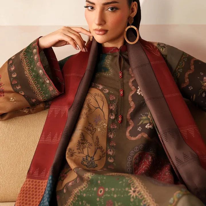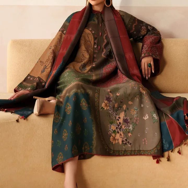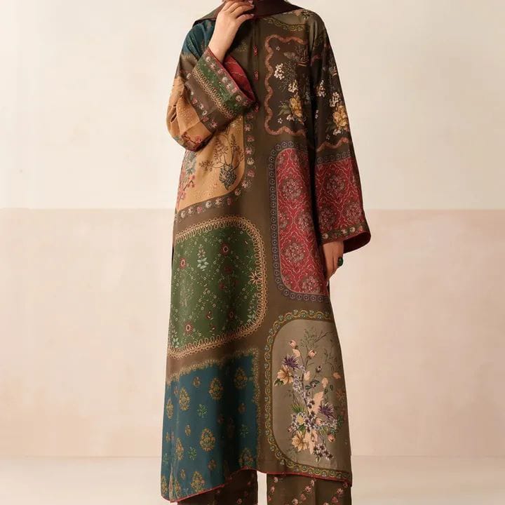 This set features a digitally printed viscose silk shirt and trouser paired with a matching viscose shawl. The lightweight viscose fabric offers breathable comfort and smooth texture, making it ideal for all-day wear. The vibrant digital prints add a modern touch while maintaining softness and elegance. This combination provides a stylish yet comfortable outfit perfect for both casual and semi-formal occasions.